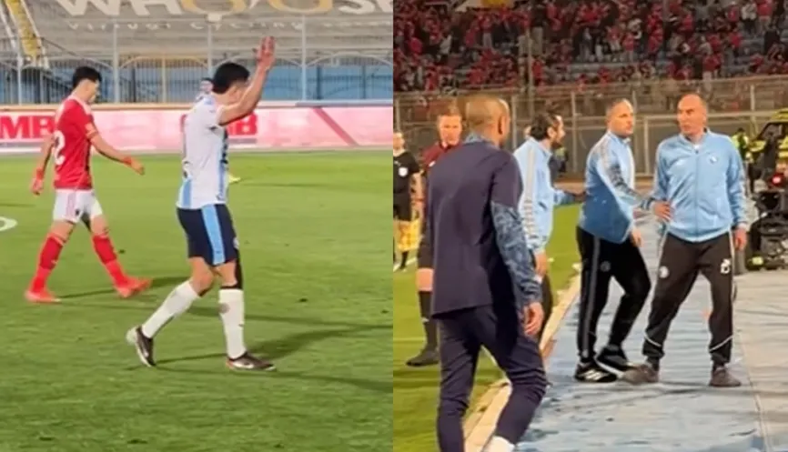 ودخل يورتشيتش في مشادة مع محمد الشيبي ونزل له في أرض الملعب بجانب خط التماس، بعد احتساب ركلة جزاء لبيراميدز.