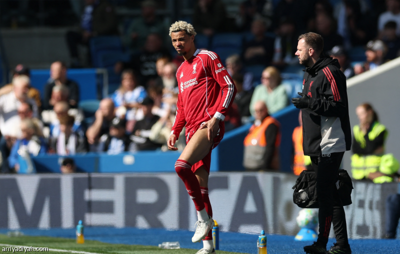 صمد الفرنسي هوجو إيكيتيكي، مهاجم فريق ليفربول الإنجليزي الأول لكرة القدم لأقل من ثماني دقائق قبل أن يخرج من الملعب وهو يعرج خلال مباراة برايتون الجارية في الدوري الإنجليزي الممتاز، السبت.