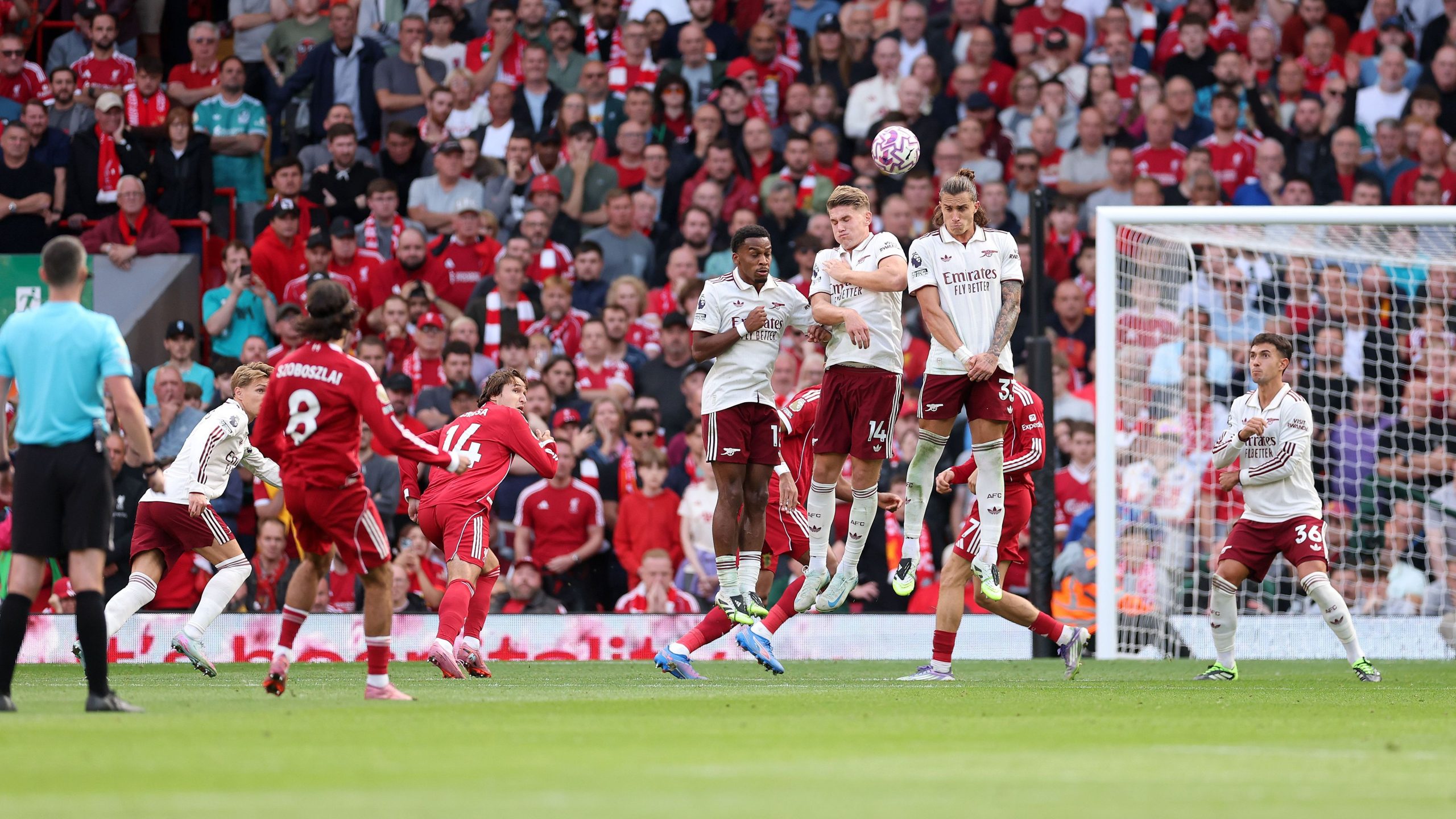 ونفذ سوبوسلاي ركلة حرة من مسافة بعيدة، لكنه سدد الكرة بطريقة رائعة، لتسكن الشباك بعدما عجز رايا عن التصدي لها، محرزا هدف تقدم الريدز.