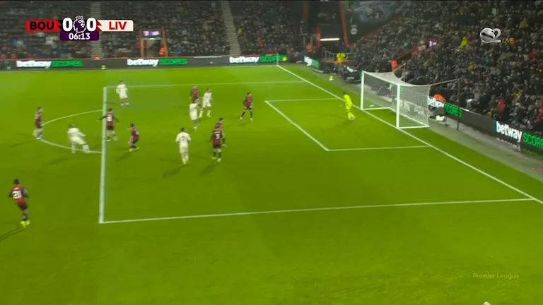 الدقيقة 21: عرضية من بورنموث يتصدى لها حارس مرمى ليفربول.