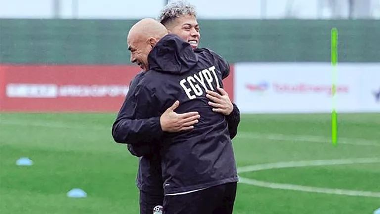 وظهر الثنائي حسام حسن وإمام عاشور، خلال دخولهما في وصلة ضحك قوية معا، أثناء المران الجماعي للفراعنة، استعدادا لمواجهة منتخب جنوب أفريقيا يوم الجمعة المقبل، في بطولة كأس أمم أفريقيا 2025.