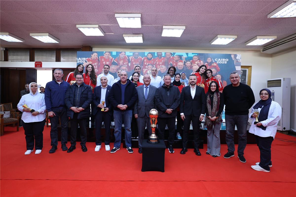 حرص مجلس إدارة النادي الأهلي برئاسة محمود الخطيب، اليوم على تكريم لاعبات الفريق الأول لكرة السلة بالنادي والجهاز الفني والإداري والطبي، بعد التتويج للمرة الأولى بلقب بطولة إفريقيا للأندية التي أقيمت في ضيافة الأهلي على مدار الأيام الماضية.