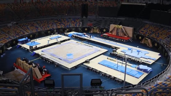 بلمسة أولمبية.. صالة استاد القاهرة تتزين لاستقبال كأس العالم للجمباز الفني