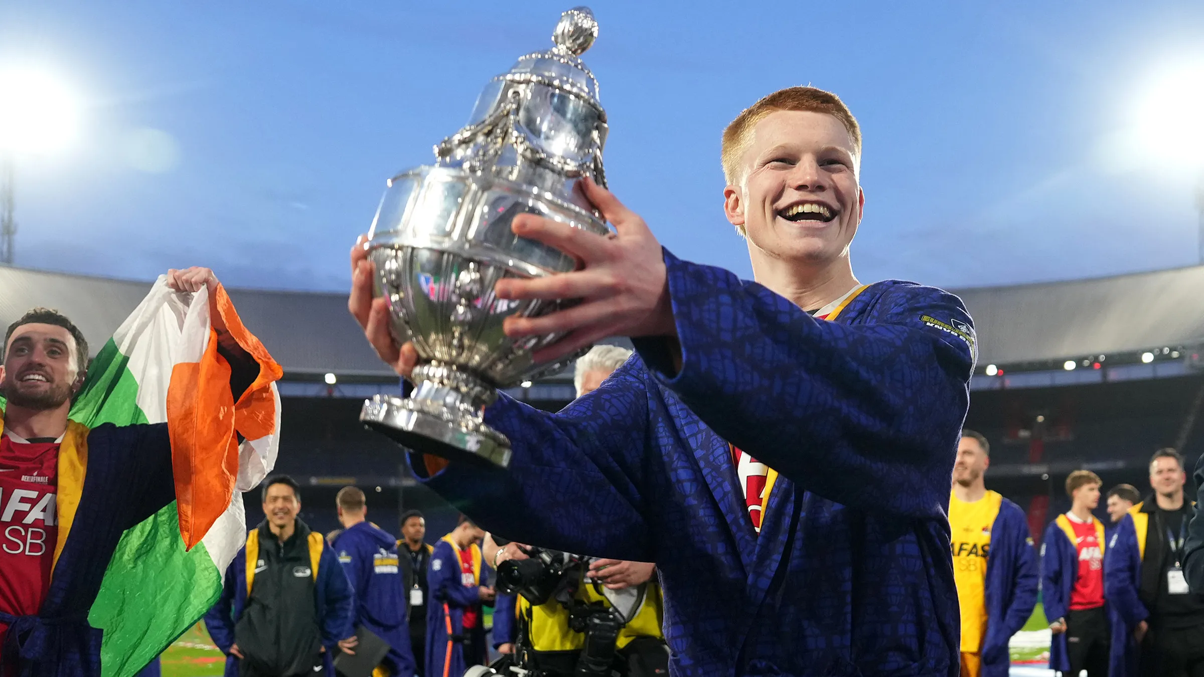 يبدو أن الوجهة القادمة للموهبة الهولندية الصاعدة، كيس سميت، بدأت تلوح في الأفق، حتى وإن كان الأمر قد بدأ بـ “دعابة”. فبينما يستعد نجم نادي ألكمار للاحتفال بلقب كأس هولندا مع فريقه في مدينة برشلونة الإسبانية، استغل اللاعب الفرصة ليوجه رسالة مبطنة حول مستقبله الاحترافي.