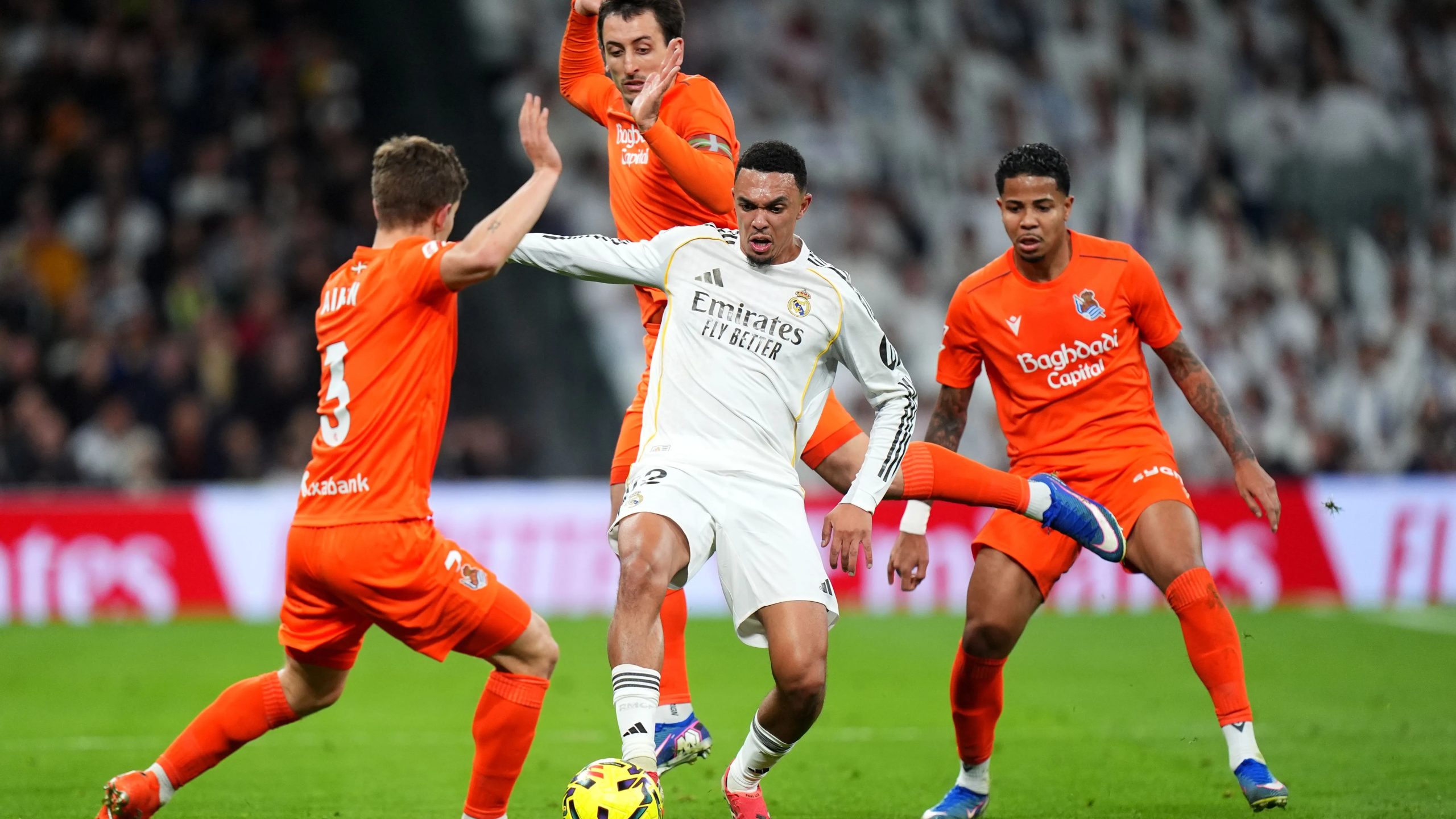 لكن الاستثناء الوحيد كان موجهًا إلى المدافع الإسباني الدولي، دين هويسن، بعدما تسبب في احتساب ركلة جزاء لصالح ريال سوسيداد، سجل منها ميكيل أويارزابال هدف التعادل (1-1)، في الدقيقة 21، بعدما كان جونزالو جارسيا قد تقدم للميرينجي، في الدقيقة 5 من اللقاء.