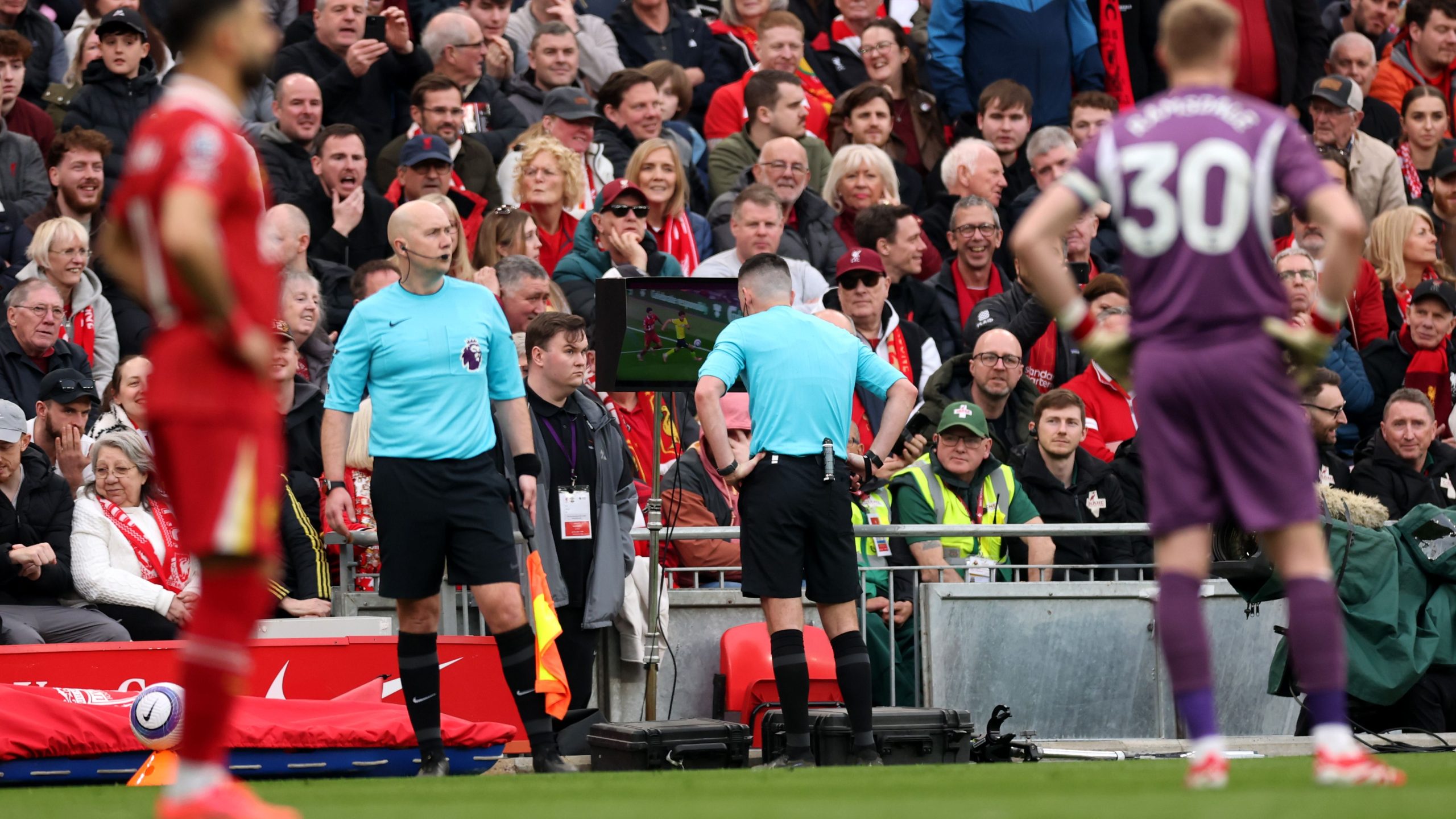 وشهدت المباراة نفسها إثارة تحكيمية بعد احتساب هدف تعادل ليفربول الذي سجله كييزا، رغم تدخل تقنية الفيديو لوجود شبهة لمسة يد على النجم محمد صلاح.