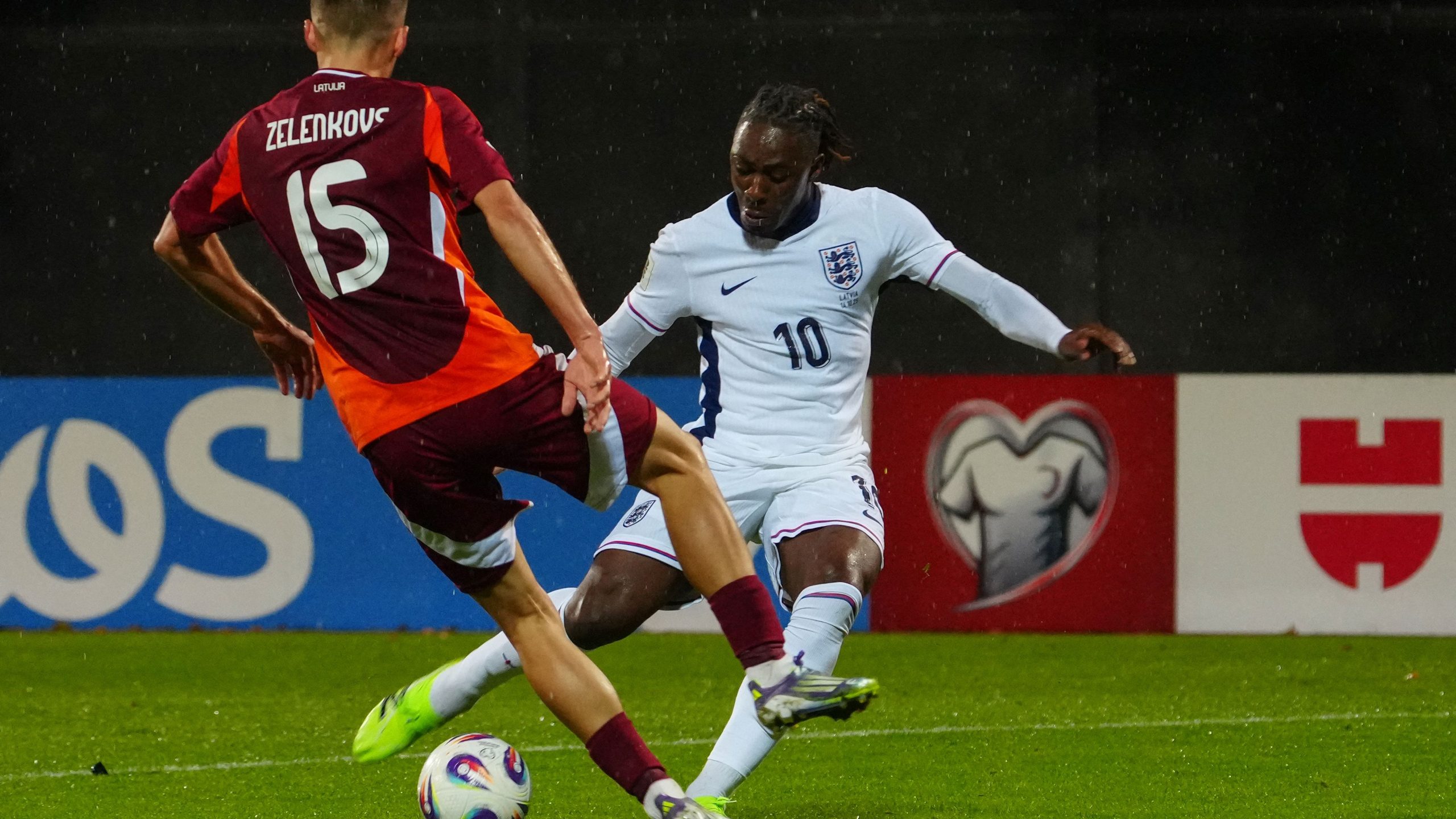 ولم تمر سوى ثلاث دقائق حتى حاولت لاتفيا مباغتة الإنجليز عبر إكاونييكس الذي استغل المساحات خلف لويس-سكيلي، ومرر كرة عرضية خطيرة حولها فاسلافانز بتسديدة قريبة، لكن المدافع كونسا تدخل في اللحظة الأخيرة وأنقذ الموقف.