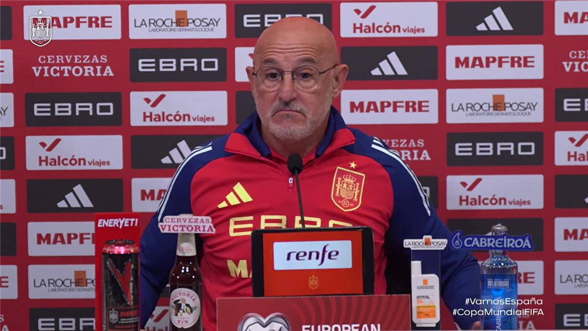 عقد لويس دي لا فوينتي مدرب منتخب إسبانيا مؤتمراً صحفياً للحديث عن استعدادات منتخب بلاده لمواجهة جورجيا في تصفيات كأس العالم 2026.
