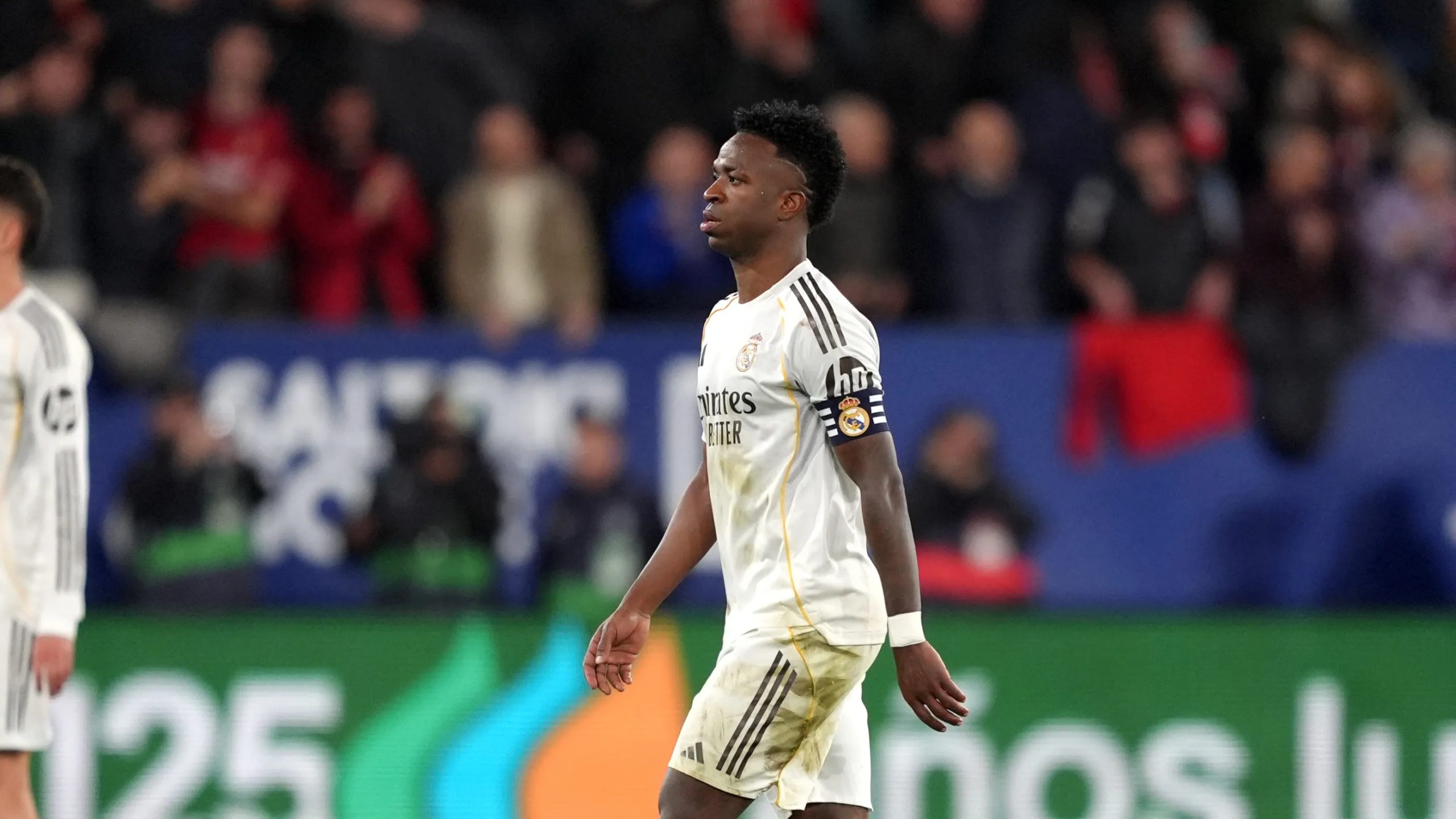 لكنه تعرض لصافرات استهجان من قبل جماهير أوساسونا خلال المباراة، بينما كانت هناك هتافات تقول “فينيسيوس، بالون دي بلايا” (Vinicius, balon de playa) أي “فينيسيوس، كرة الشاطئ”، في إشارة إلى خسارته جائزة الكرة الذهبية عام 2024. كما وجهت له بعض الجماهير عبارة (tonto)، أي “أحمق” باللغة الإسبانية.