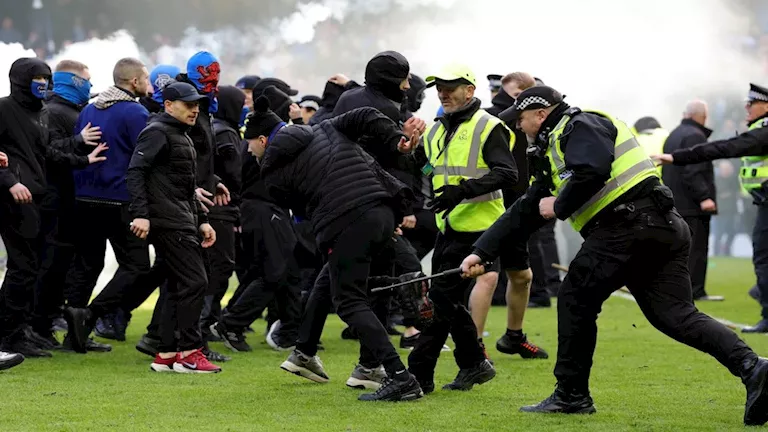 وتدخلت قوات الأمن لاحتواء الموقف وإيقاف أعمال الشغب، وتمكنت من إعادة الجماهير إلى المدرجات والسيطرة على الأوضاع داخل الملعب.