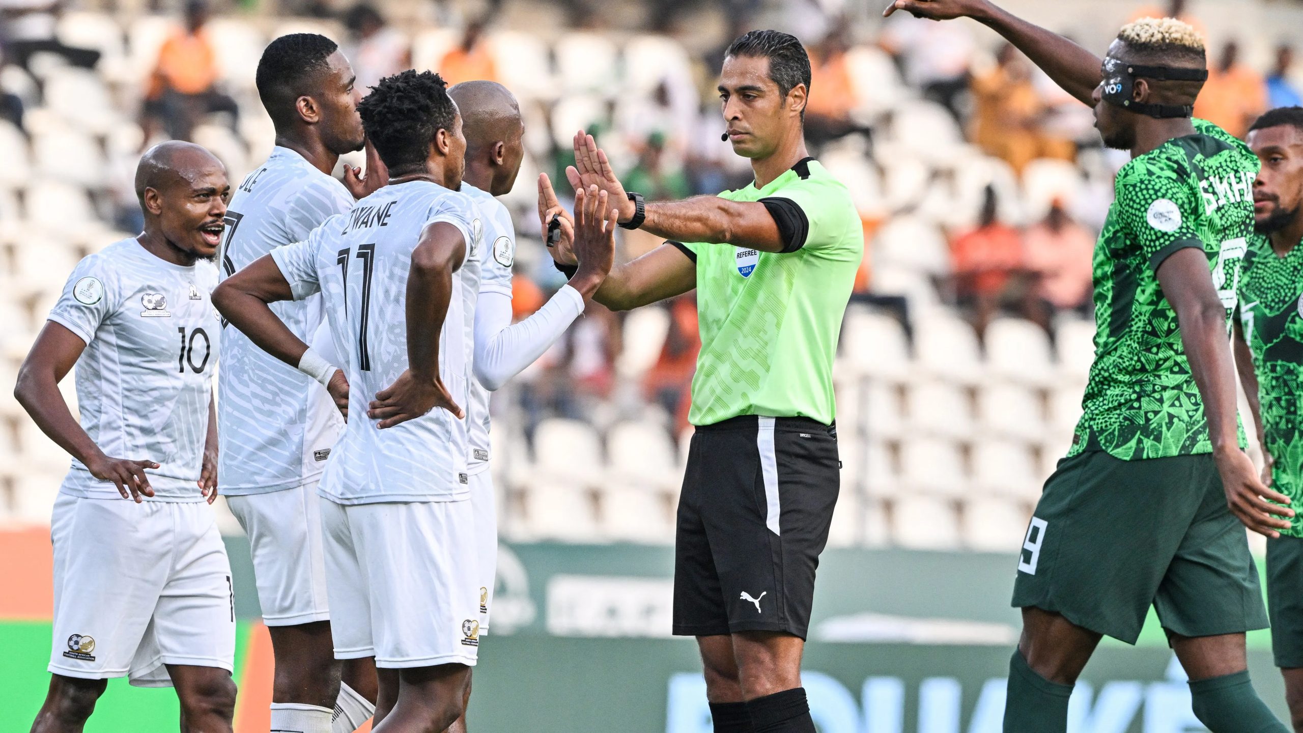 ويقود مباراة الذهاب طاقم تحكيمي مصري بقيادة الحكم أمين عمر، بمساعدة كلا من محمود أبو الرجال، وأحمد حسام طه، فيما سيتولي مهمة الحكم الرابع محمد معروف، وعلى تقنية الفيديو (VAR) مواطنه الحكم محمود عاشور، ويعاونه حسام عزب كحكم مساعد لتقنية الفيديو.