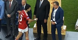 وجاء ذلك خلال توزيع الميداليات عقب تتويج الأهلي بالسوبر المصري.