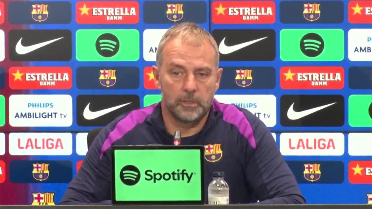 عقد هانز فليك مدرب برشلونة مؤتمراً صحفياً للحديث عن جاهزية فريقه لمواجهة جيرونا غداً في الدوري الاسباني لكرة القدم.