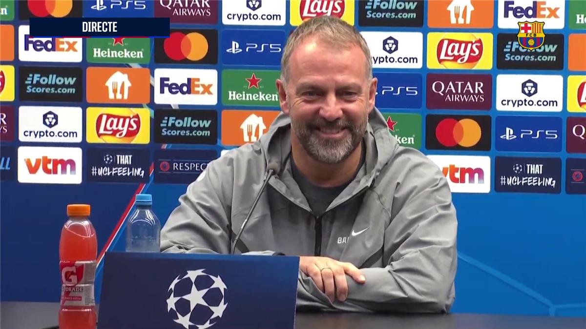 ظهر المدير الفني لفريق برشلونة، هانز فليك، في مؤتمر صحفي مساء يوم الثلاثاء من أجل الحديث عن مباراة الغد المرتقبة ضد كلوب بروج، في بطولة دوري أبطال أوروبا.