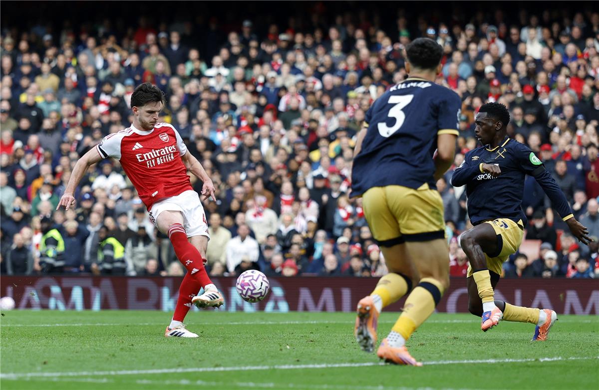وجاء هدف تقدم آرسنال عن طريق ديكلان رايس، بعد تمريرة بينية قابلها إيزي بتسديدة من داخل منطقة الجزاء وتصدى لها الحارس وارتدت الكرة وتابعها رايس وسدد في الدقيقة 38.