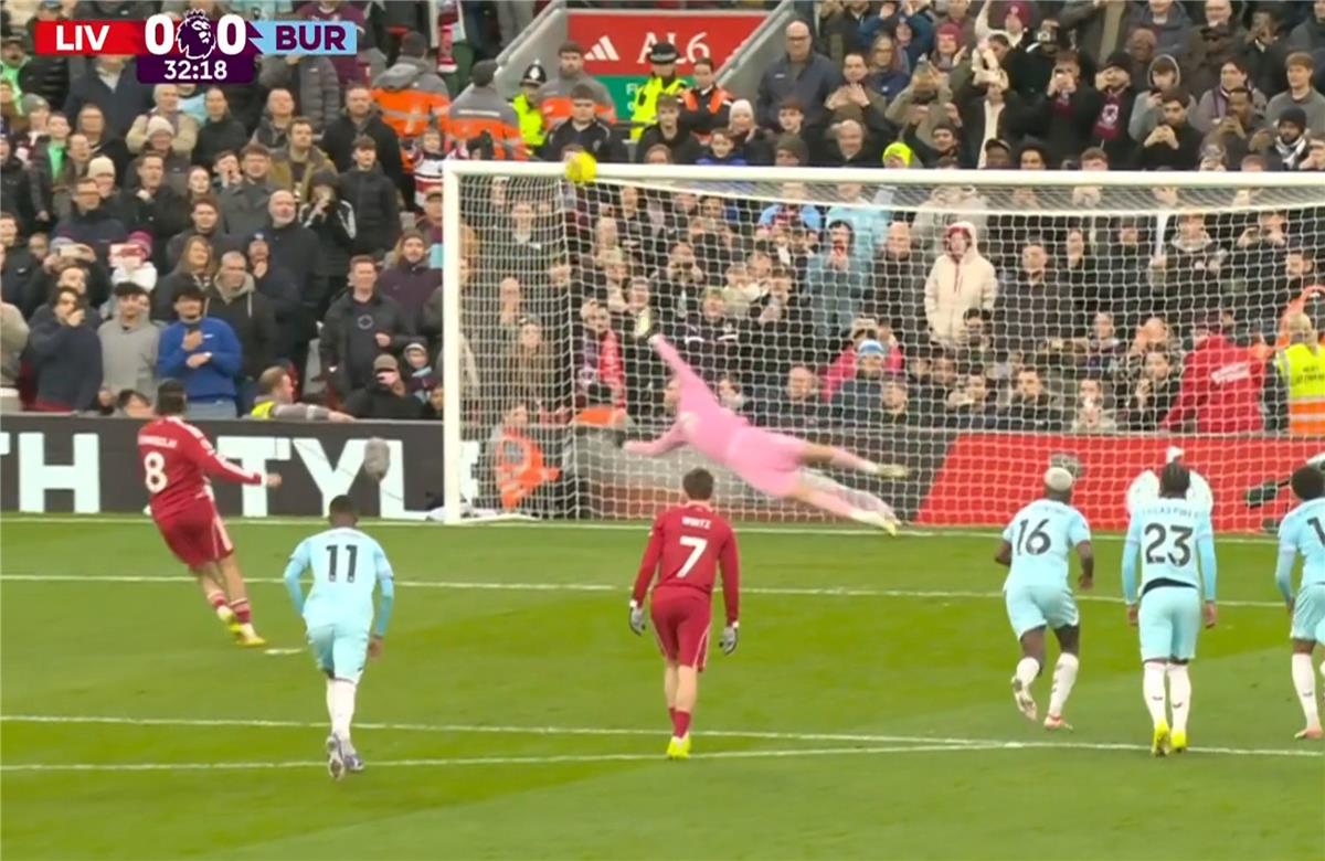 أهدر فريق ليفربول فرصة التقدم بهدف في شباك خصمه بيرنلي، في مباراتهما الجارية حاليًا في بطولة الدوري الإنجليزي الممتاز، موسم 2025/26.