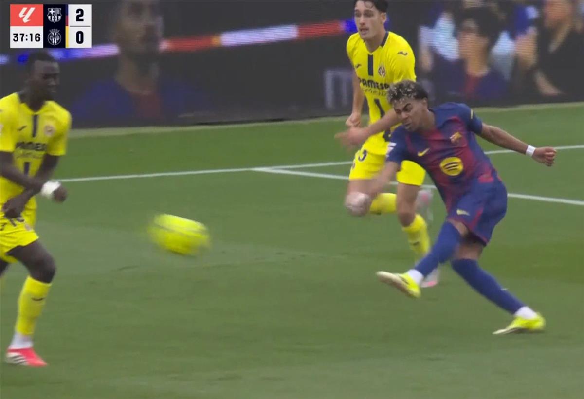 أحرز لامين يامال الهدف الثاني لبرشلونة أمام فياريال، خلال اللقاء الذي يجمع بين الفريقين ضمن منافسات الدوري الاسباني لكرة القدم.