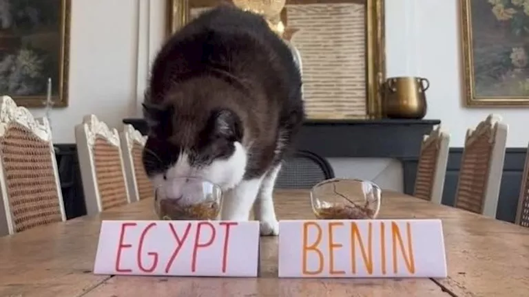 وظهر القط في فيديو بتاريخ اليوم 5 يناير 2026 وهو يتجه نحو الإناء الخاص بمنتخب مصر، ليعلن بذلك توقعه فوز الفراعنة على بنين في مواجهة الليلة.