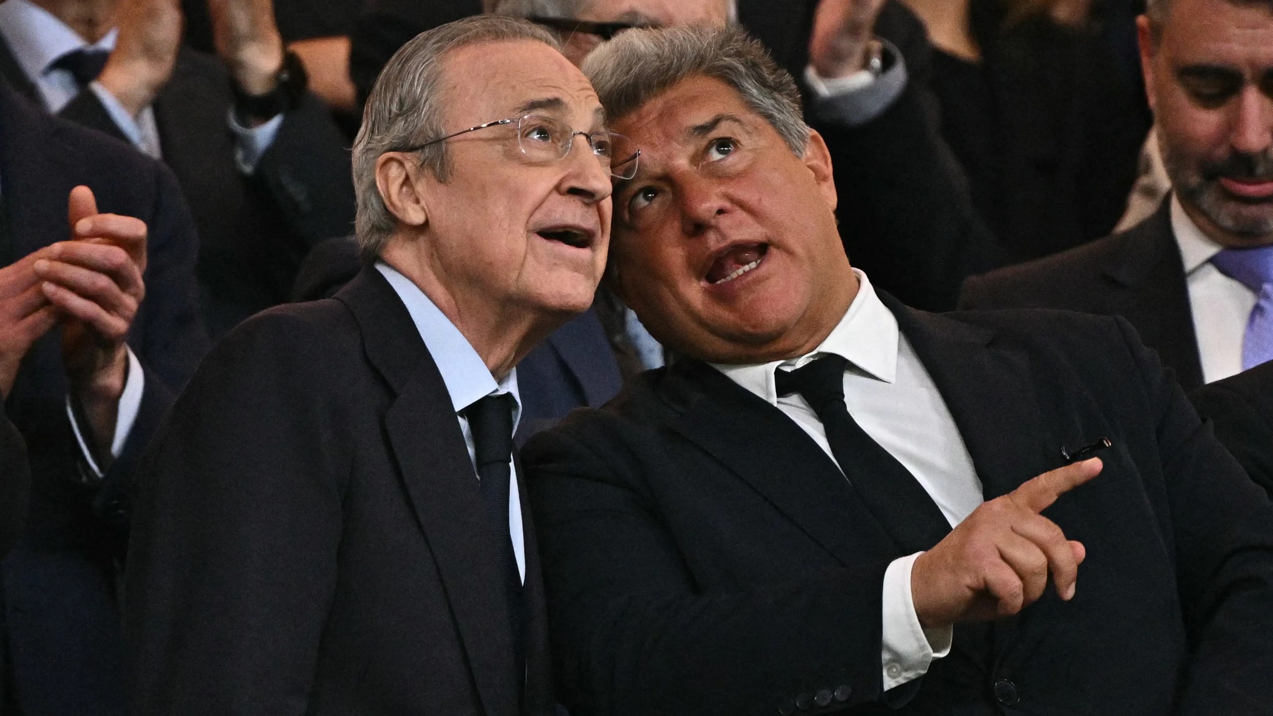 تابع رئيس برشلونة خوان لابورتا عن كثب مباراة سوبر مثيرة انتهت برفع برشلونة لقبه السادس عشر في هذه البطولة، مع صورة اتسمت بالاتزان والبرود والتوتر خلال اللقاء المؤسسي مجدداً مع بيريز.