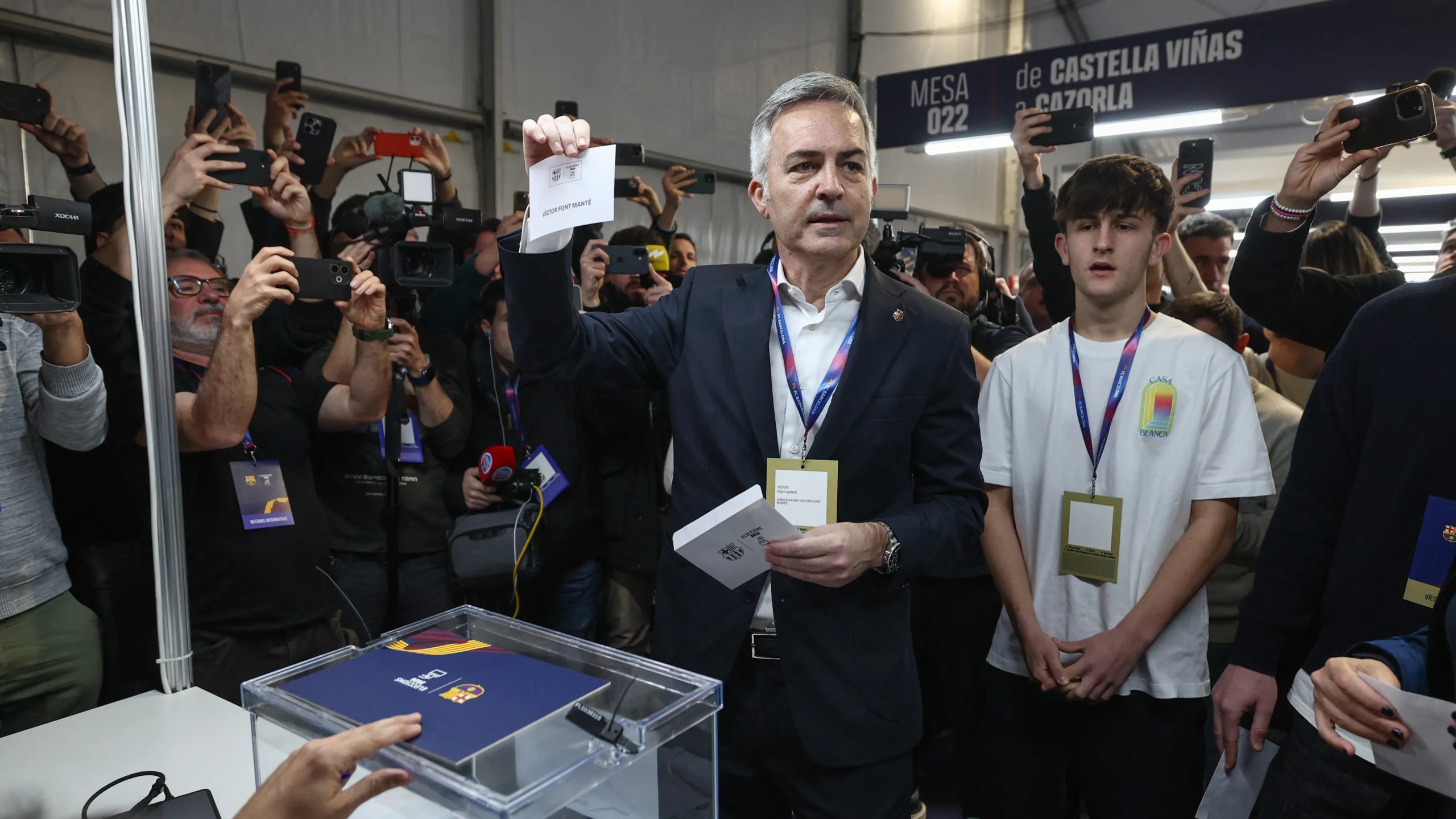 والتُقطت صور لحارس جيرونا، المعار من البارسا، وهو يتحدث على انفراد إلى فونت، المنافس الوحيد للرئيس خوان لابورتا، أثناء تواجد تير شتيجن في مقر النادي للإدلاء بصوته.