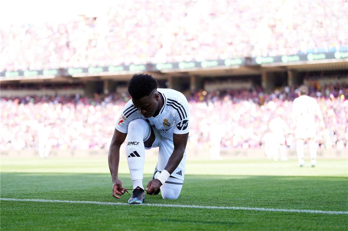 نال نجم فريق ريال مدريد، فينيسيوس جونيور، سخرية من جانب أحد مشجعي فريق برشلونة، خلال مباراتهما مساء يوم الأحد في بطولة الدوري الإنجليزي الممتاز لكرة القدم.