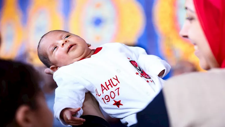 ونشر الحساب الرسمي للأهلي على موقع التواصل الاجتماعي “فيسبوك”، صورة لمولودة ترتدي ثوبًا عليه شعار النادي الأهلي.