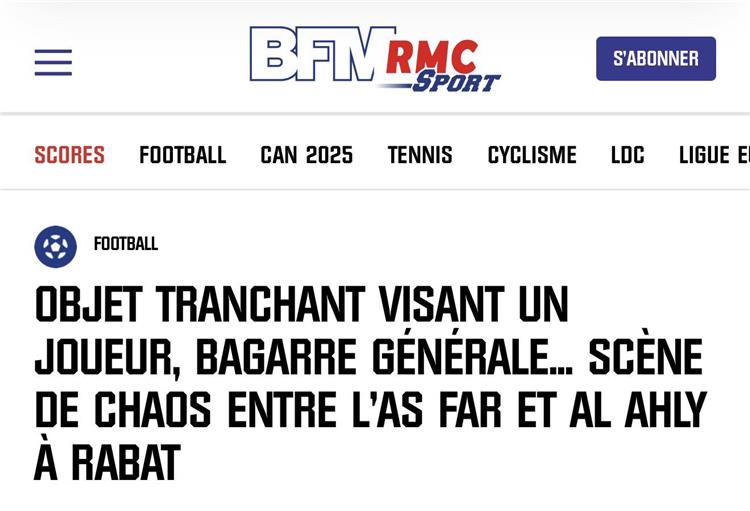 وأفادت أنه قد تعرض أحد اللاعبين لهجوم بأداة حادة خلال مباراة بدوري أبطال إفريقيا، وقد جرى ذلك في أحد الملاعب التي ستستضيف كأس الأمم الأفريقية بعد ما يزيد قليلاً عن ثلاث أسابيع في المغرب.