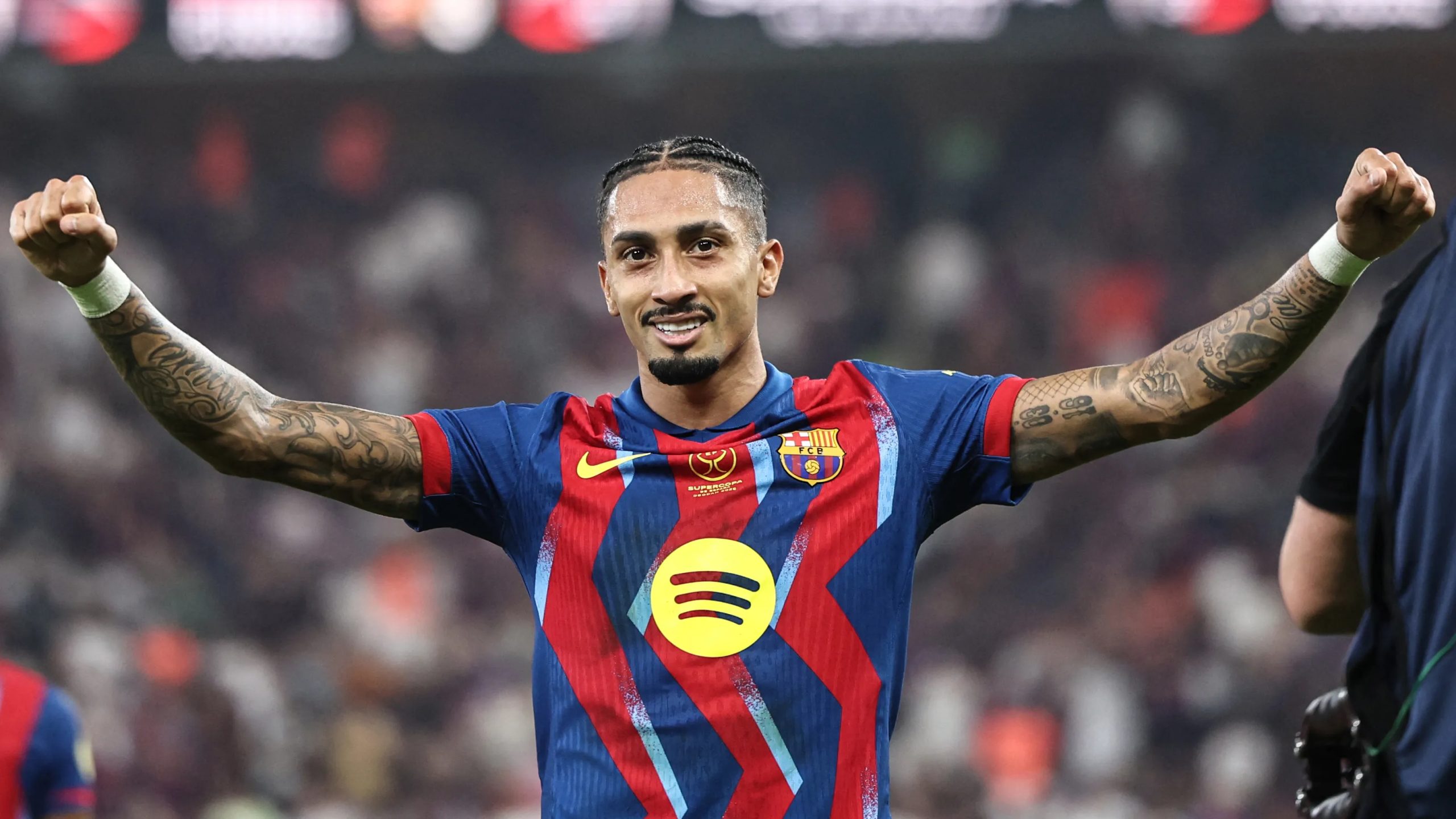 قاد البرازيلي رافينيا، فريقه برشلونة، لحصد لقب كأس السوبر الإسباني، بالفوز على الغريم التقليدي، ريال مدريد، بنتيجة 3/2، في اللقاء الذي أقيم مساء اليوم الأحد، بالسعودية.