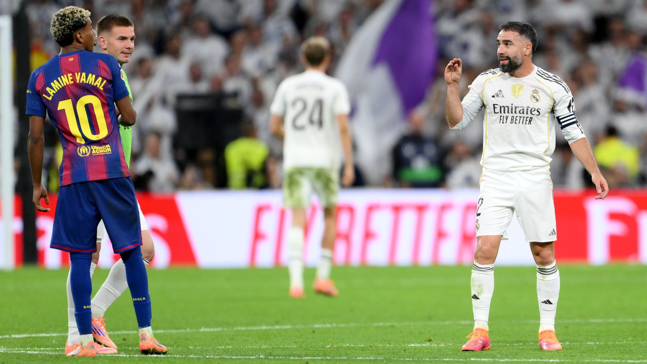 ودخل كارفاخال في مشادة مع لامين يامال، عقب مباراة الكلاسيكو، وذلك على خلفية تصريحات جوهرة برشلونة ضد ريال مدريد واتهامهم بالاستفادة من الحكام والشكاوى ضدهم.