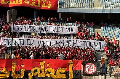 رفعت جماهير الأهلي رسالة دعم لمدرب الفريق الجديد ييس توروب، خلال تواجدها في ملعب القاهرة، وذلك تعبيرًا عن دعمهم له في مستهل مشواره مع القلعة الحمراء.
