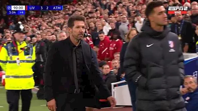 ولم يتمالك المدير الفني لأتليتكو مدريد سيموني أعصابه، عقب تسجيل الريدز الهدف الثالث قبل نهاية المباراة بدقائق قليلة، ليدخل في مشادة مع أحد جماهير الفريق الإنجليزي، الذي كان يحتفل بشكل جنوني أمام سيميوني بهدف فريقه، مما اعتبره المدرب الأرجنتيني نوع من أنواع الاستفزاز.