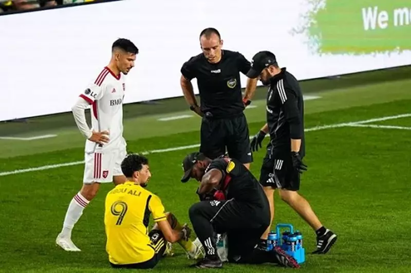 وجاءت إصابة أبو علي أثناء محاولته قطع تمريرة موجهة إلى مدافع تورونتو كوسي تومبسون، وظل على أرض الملعب لمدة تقارب 10 دقائق قبل أن يحتاج إلى تدخل طبي ويغادر اللقاء.